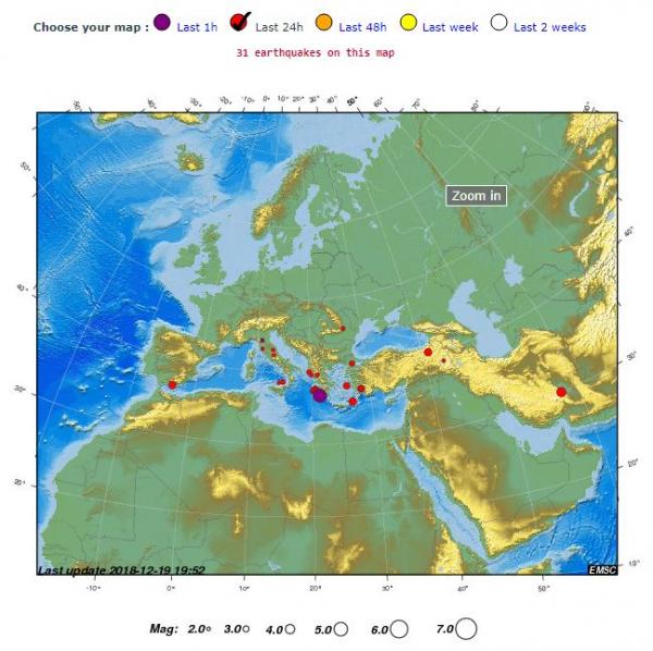 Σύμφωνα με το Ευρωπαϊκό – Μεσογειακό Σεισμολογικό Κέντρο η σεισμική δόνηση, η οποία σημειώθηκε λίγο μετά τις 21:30, είχε μέγεθος 4,9 Ρίχτερ.