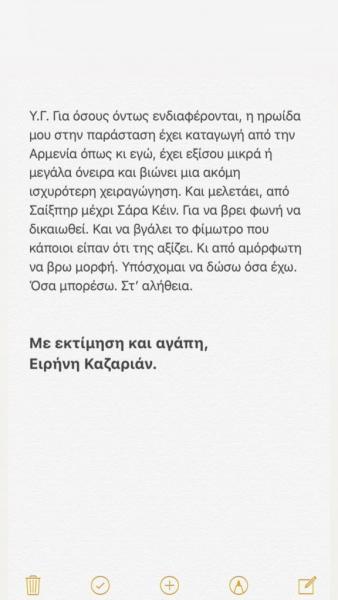 Άστραψε και βρόντηξε η Ειρήνη Καζαριάν μετά την αρνητική δημοσιότητα που έλαβε σε πρόσφατη συνέντευξη της.