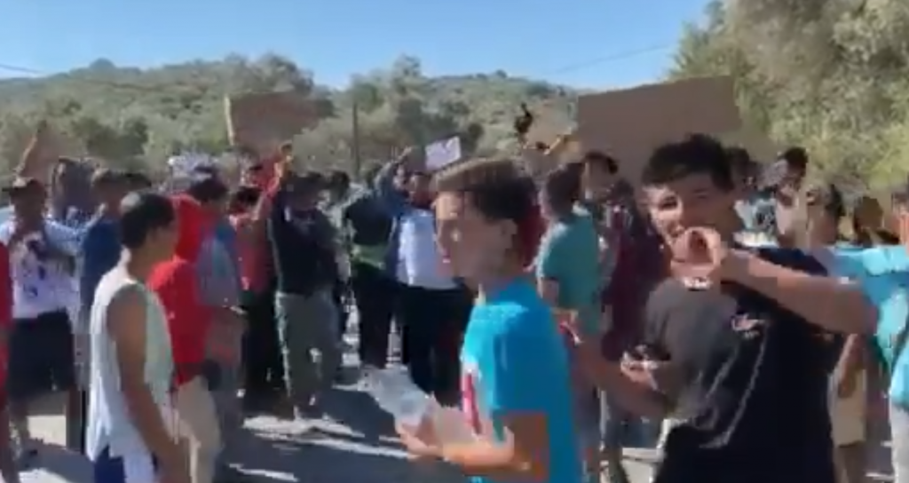 Καθιστική διαμαρτυρία πραγματοποιούν οι πρόσφυγες και μετανάστες που παραμένουν στη Μόρια.