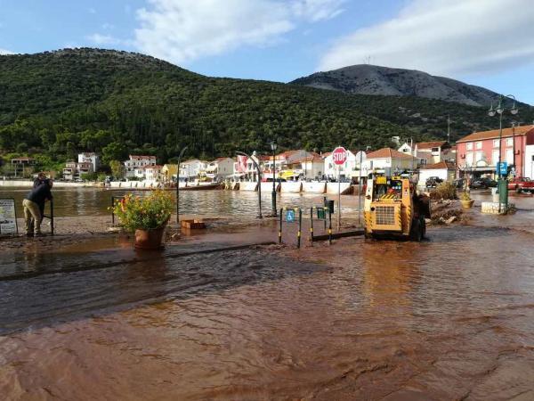 Για να αδειάσουν οι δρόμοι του χωριού από την λάσπη, συνεργεία της Περιφερειακής Ενότητας Κεφαλονιάς και του Δήμου Σάμης, έσπασαν το τοιχάκι της παραλιακής για να τρέξει η λάσπη στη θάλασσα.