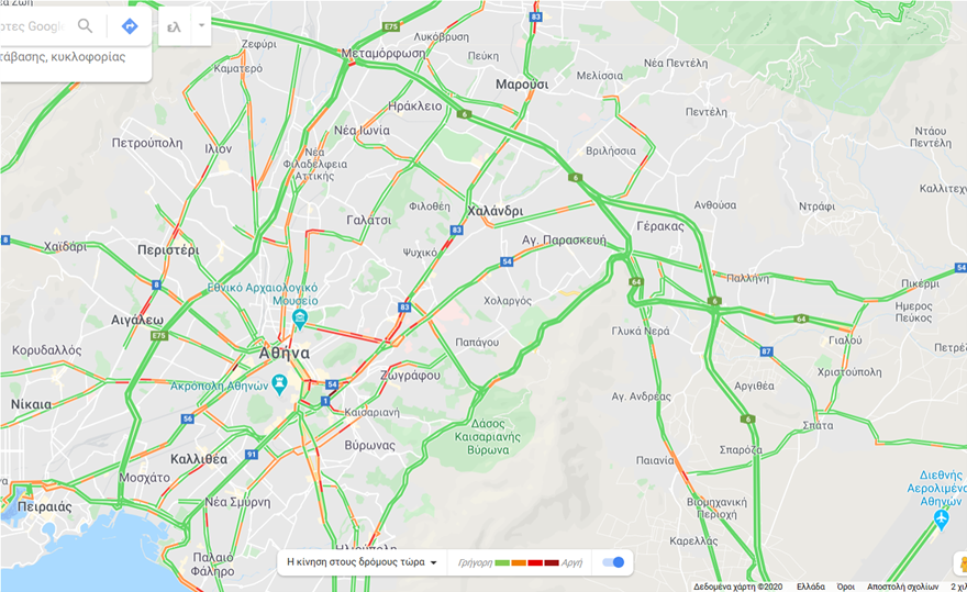 Χαρακτηριστικό είναι το γεγονός ότι οι δρόμοι της Αθήνας, ακόμα και σε ώρες αιχμής, είναι πράσινοι.