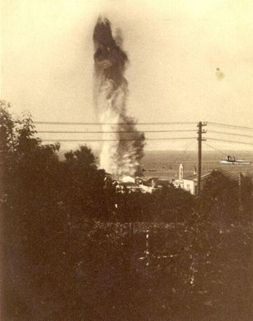 Από αυτές μόνο μία βρήκε το στόχο της (οι άλλες δύο εξερράγησαν στην προκυμαία), καταφέροντας όμως καίριο πλήγμα στο ελληνικό σκάφος, στο μηχανοστάσιο και στις δεξαμενές πετρελαίου.
