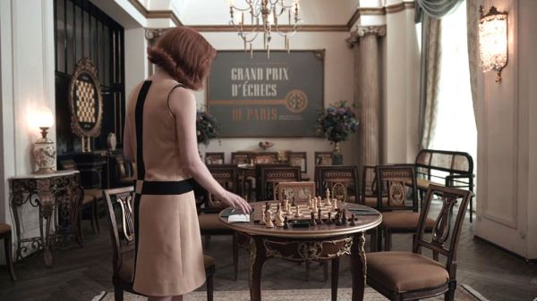 Το σκάκι, στην αρχή του έργου, μοιάζει άχαρο και διεξοδικό: έτσι και τα ρούχα της μικρής Μπεθ. Το αγαπημένο της χειροποίητο φουστάνι καίγεται ανάλγητα από την διευθύντρια του ορφανοτροφείου και αντικαθίσταται με μια στολή, ενώ το μαλλί της κόβεται άχαρα και αυστηρά. Όσο προχωρούν τα επεισόδια και η μικρή Μπεθ από την προεφηβεία περνά στην πρώιμη γυναικεία της φάση, το σκάκι αρχίζει να φαντάζει όλο και πιο σέξι, όλο και πιο stylish.