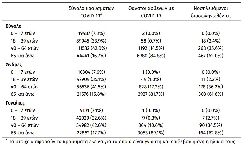 Οι νέοι θάνατοι ασθενών με COVID-19 είναι 72, ενώ από την έναρξη της επιδημίας έχουν καταγραφεί συνολικά 8.232 θάνατοι. Το 95.7% είχε υποκείμενο νόσημα ή/και ηλικία 70 ετών και άνω.