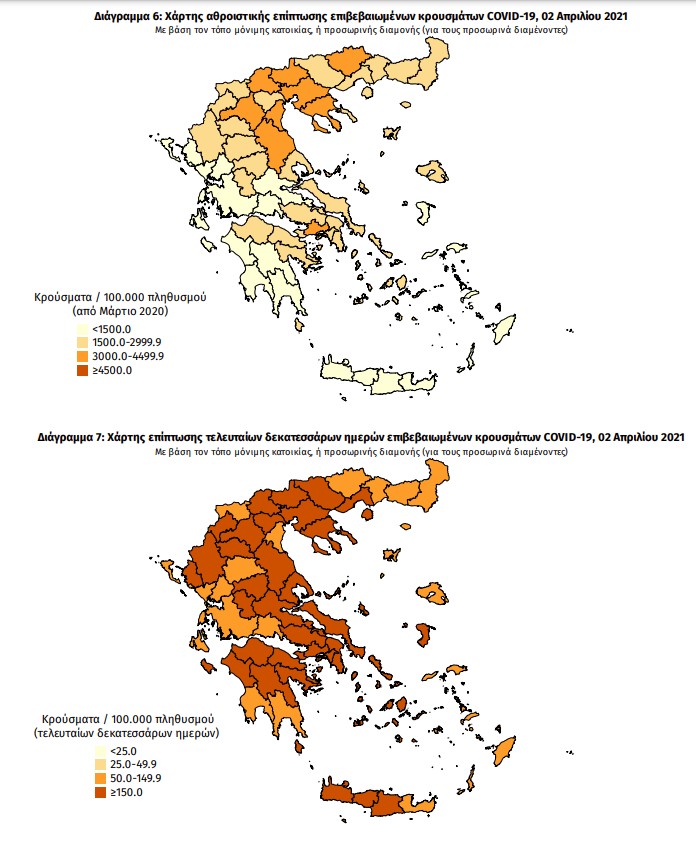 Ο χάρτης αποτυπώνει τη γεωγραφική κατανομή των συνολικών κρουσμάτων COVID-19 (από την αρχή της επιδημίας) ανά Περιφερειακή Ενότητα της χώρας, με βάση την δηλωθείσα διεύθυνση μόνιμης κατοικίας του ασθενούς, ή τη διεύθυνση προσωρινής διαμονής για τους τουρίστες και άλλους προσωρινά διαμένοντες στην Ελλάδα. Συμπεριλαμβάνονται τόσο κρούσματα με ιστορικό ταξιδίου (“εισαγόμενα”) όσο και κρούσματα με πιθανή εγχώρια μετάδοση.
