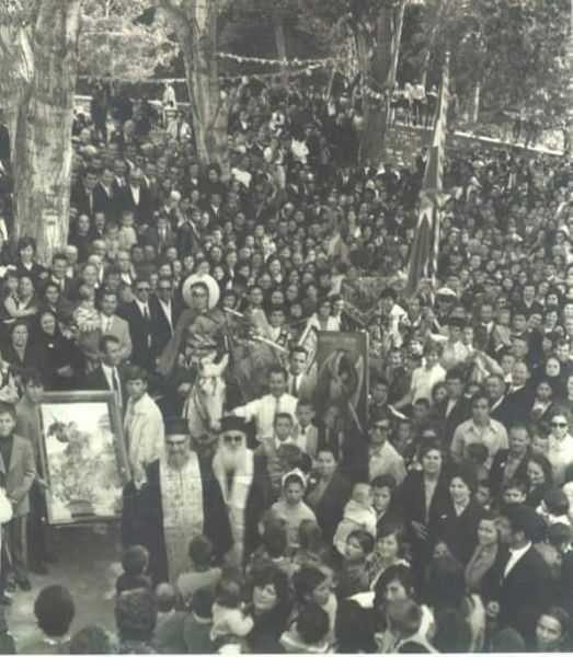«…Μετά την τέλεσιν της θείας λειτουργίας εις την κεντρικήν εκκλησίαν οι ιερείς και το εκκλησίασμα μετέβησαν εις το παρεκκλήσιον του Αγίου Γεωργίου, ολίγον έξωθι του χωρίου, ένθα και το νεκροταφείον. Εκεί ετελέσθη αγιασμός είτα δε διανομή γάλακτος και λουκουμιών.