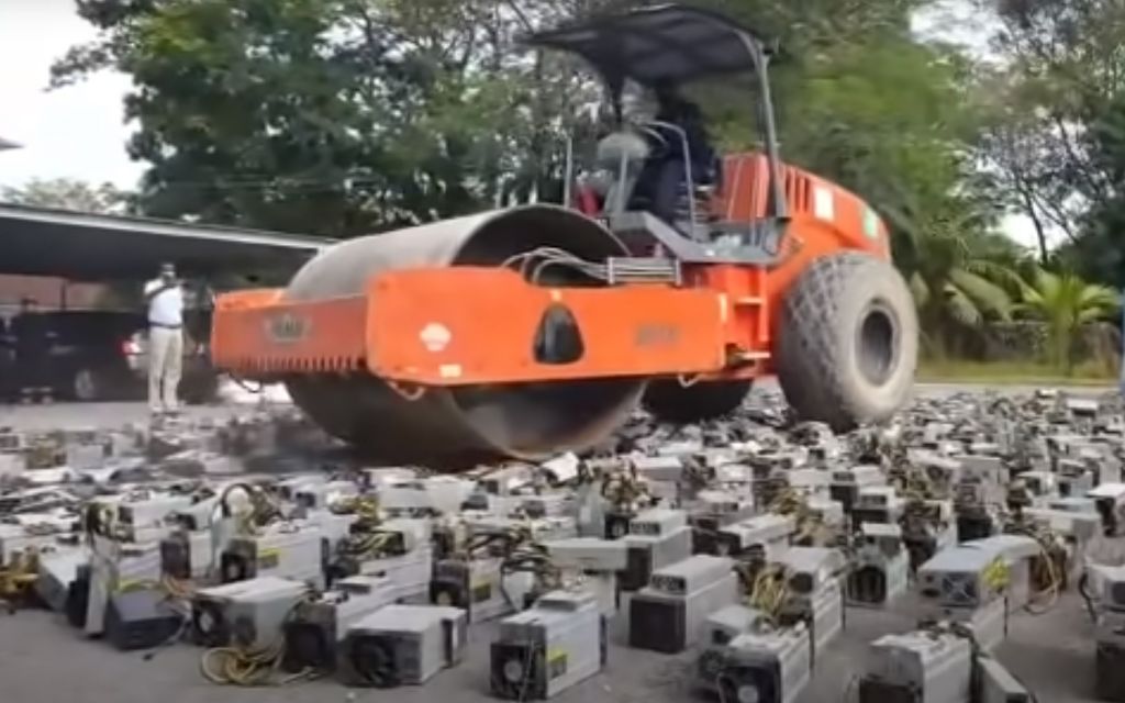 Σύμφωνα δε με το CNBC, viral έγινε σχετικό βίντεο που δείχνει τη στιγμή που ένας οδοστρωτήρας περνάει πάνω από τους υπολογιστές εξόρυξης, με την αξία του εξοπλισμού που καταστρέφεται να εκτιμάται στα 1,26 εκατ. δολάρια.