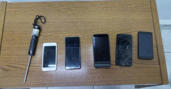 Κατά την έρευνα στα κελιά των φυλακών βρέθηκαν και κατασχέθηκαν αυτοσχέδιο σουβλί και πέντε κινητά τηλέφωνα, όπως αναφέρει ο ΑΝΤ1.