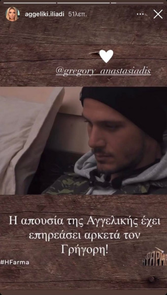 Η Αγγελική Ηλιάδη που παρακολουθεί το ριάλιτι από το σπίτι της, δημοσίευσε στον λογαριασμό της στο instagram το απόσπασμα με όσα εξομολογήθηκε ο αγαπημένος και πρόσθεσε μια καρδιά δίπλα στο όνομά του.