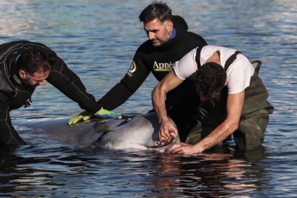 Η φάλαινα θα μείνει στο σημείο μέχρι να βγουν οι εξετάσεις, να διαπιστωθεί τι έχει και να αποφασιστεί τι θα γίνει.