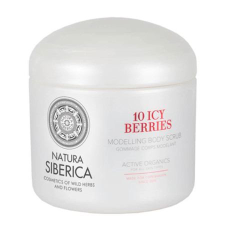 Δέκα παγωμένα μούρα κρύβονται μέσα στο δροσερό scrub της Natura Siberica και συμβάλλουν στη σμίλευση της σιλουέτας σου. Ashberry, βατόμουρο, φράουλα, ιπποφαές, φραγκοστάφυλο, cranberry, cloudberry και μύρτιλλο συναντιούνται με άγρια βότανα Σιβηρίας και φύκια από τα νησιά Φερόε, δημιουργώντας μια έκρηξη από βιταμίνες, αντιοξειδωτικά, σαπωνίνες, τανίνες, μέταλλα ιχνοστοιχεία και ιώδιο που θρέφουν την επιδερμίδα σου.