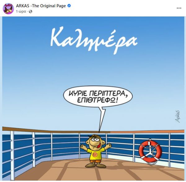 Ο μικρός μπόμπιρας ενημερώνει στην σημερινή «καλημέρα» του Αρκά, τον περιπτερά ότι επιστρέφει από τις σύντομες διακοπές του.