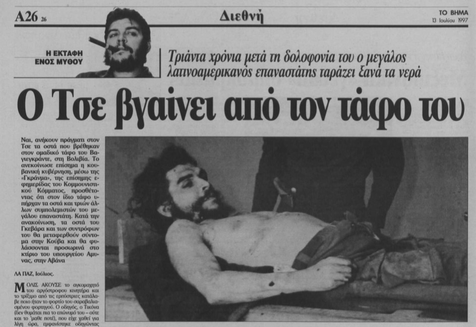 Η τοποθεσία της ταφής του παρέμενε επτασφράγιστο μυστικό για δεκαετίες. «ΤΟ ΒΗΜΑ» της 13ης Ιουλίου 1997 αφηγείται τις τελευταίες ώρες του Τσε και το πώς αποκαλύφθηκε τελικά το μεγάλο μυστικό.