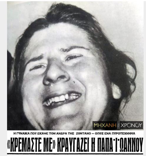 Στις 8 το πρωί της 24ης Οκτωβρίου 1963, ο Παναγιώτης Παπαϊωάννου υπέκυψε στα εγκαύματά του στο Ιπποκράτειο Νοσοκομείο, καθώς το προηγούμενο βράδυ, η σύζυγός του τον περιέλουσε με βενζίνη την ώρα που κοιμόταν, του έβαλε φωτιά και τον έκαψε ζωντανό.