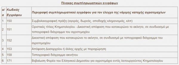 Συγκεκριμένα, όπως ανακοίνωσε ο ΟΠΕΚΕΠΕ στο πλαίσιο των ελέγχων που διενεργεί, παραγωγοί των οποίων οι πληρωμές δεν έχουν ολοκληρωθεί, εξαιτίας της υπαγωγής τους στην εν λόγω κατηγορία ευρημάτων, καλούνται να καταθέσουν συμπληρωματικά ισχυρά νομικά έγγραφα, όπως αυτά αναγράφονται στον πίνακα συμπληρωματικών εγγράφων που ακολουθεί, ώστε μετά από έλεγχο να επιβεβαιωθεί η νόμιμη κατοχή των αγροτεμαχίων και να ολοκληρωθεί η πληρωμή τους.