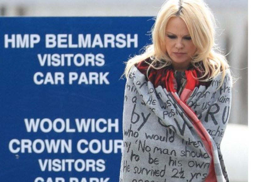 Φορώντας μια κάπα που πάνω της είχε γραμμένα μηνύματα με αναφορά στην τυραννία και τον Όλιβερ Κρόμγουελ, η γνωστή ηθοποιός υποστήριξε ότι ο Αυστραλός ακτιβιστής «έχει αποκοπεί από όλους, ακόμα και από τα παιδιά του». «Δεν του αξίζει να βρίσκεται σε φυλακή υψίστης ασφαλείας. Δεν έχει διαπράξει ποτέ βίαιη πράξη, είναι αθώος», δήλωσε η Αντερσον έξω από τη φυλακή.