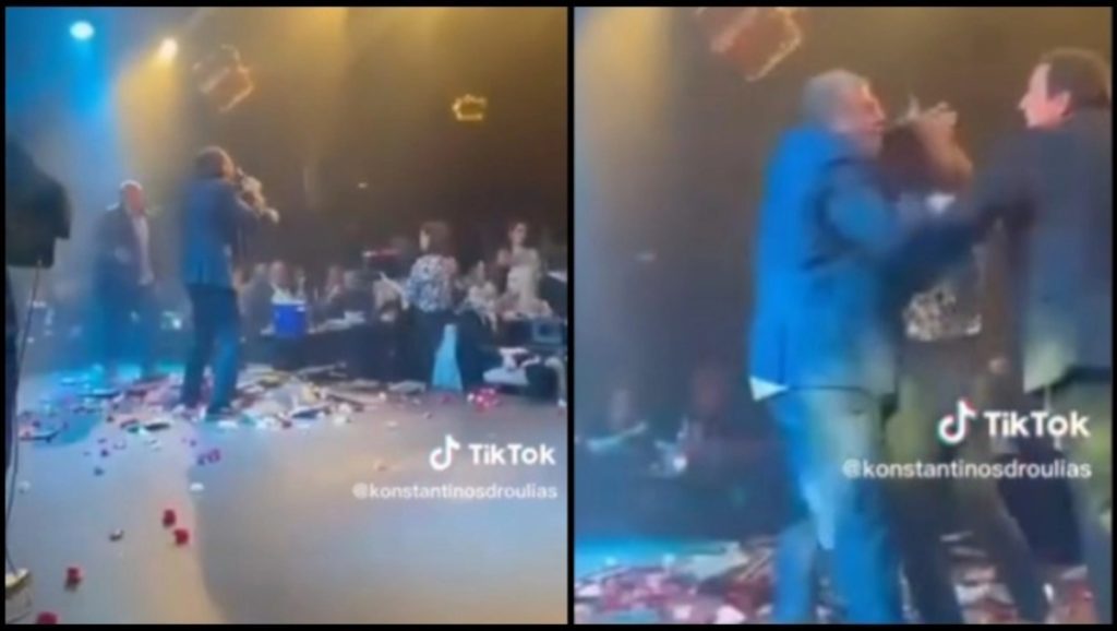 Εκείνη την ώρα λοιπόν ένας θαμώνας που βρισκόταν στην αριστερή πλευρά του τραγουδιστή, ανέβηκε… «μανουριασμένος» στην πίστα και επιτέθηκε στον Αντύπα σπρώχνοντας τον ενώ έφτασε και στο σημείο να τον χτυπήσει κιόλας.