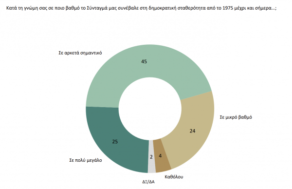 Ερώτηση: Κατά τη γνώμη σας σε ποιο βαθμό το Σύνταγμά μας συνέβαλε στη δημοκρατική σταθερότητα από το 1975 μέχρι και σήμερα…;