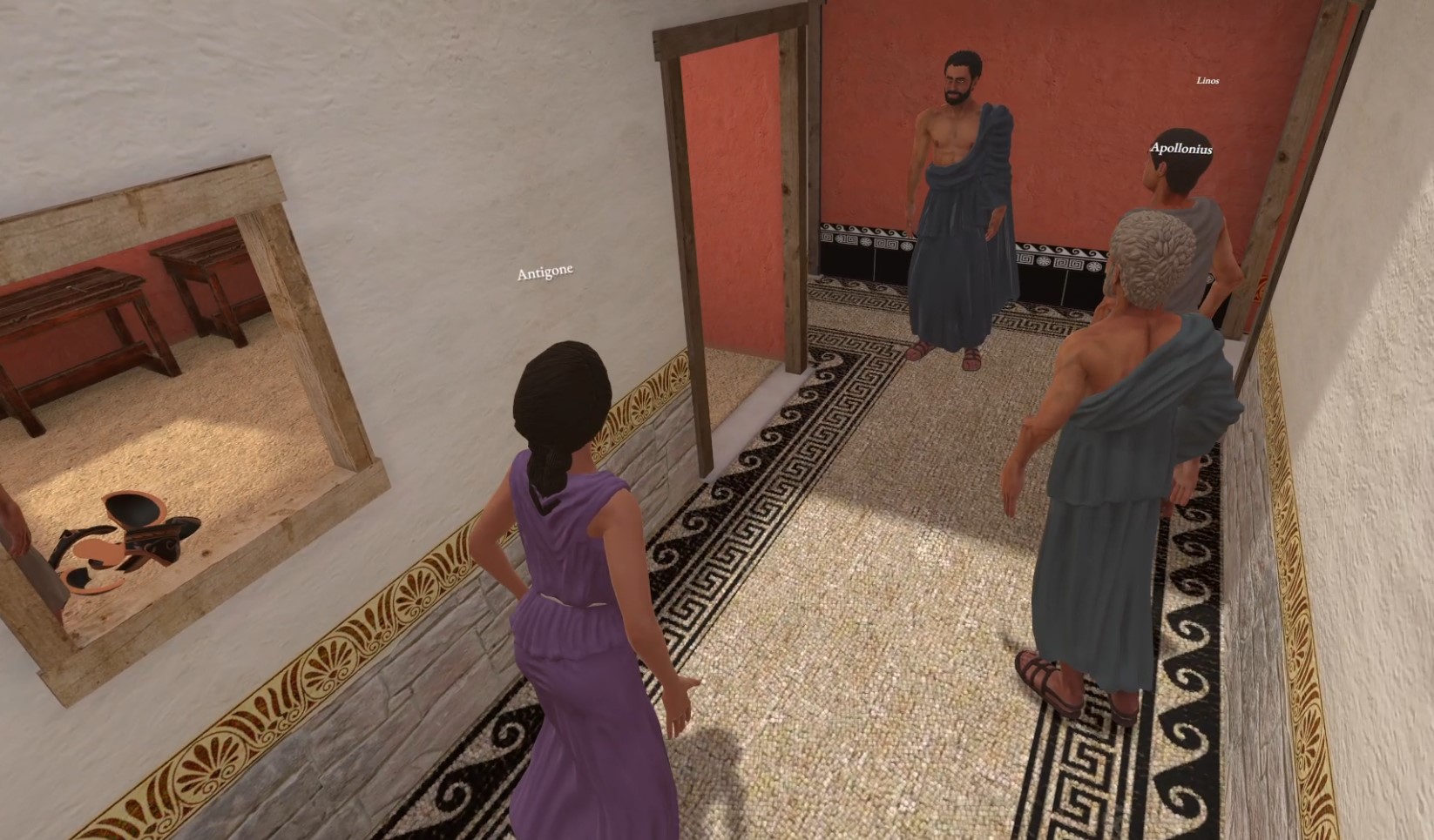 Στη συνέχεια πέρασα μια πόρτα και… μαγικά βρέθηκα στον 5ο αιώνα π.Χ. Αφού μπήκαν και οι υπόλοιποι παίκτες: η Αντιγόνη, ο Λίνος, η Μέλισσα και ο Ιππίας (μέχρι τέσσερις άνθρωποι μπορούν να συμμετάσχουν σε κάθε κύκλο εξερεύνησης) η περιπέτεια ξεκίνησε.