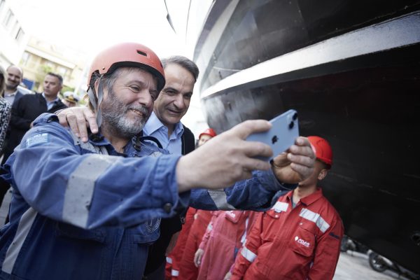 Ο κ. Μητσοτάκης συνομίλησε με τους εργαζόμενους των ναυπηγείων, ενώ στο μηχανουργείο παρακολούθησε τις εργασίες που πραγματοποιούνται σε συγκεκριμένα εξαρτήματα από εξειδικευμένους τεχνικούς.