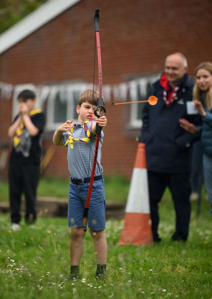 Αυτή τη φορά σε μία εκδήλωση εθελοντισμού κατά την τελευταία ημέρα των εκδηλώσεων για τη στέψη του βασιλιά Καρόλου, ο μικρός πρίγκιπας πιάστηκε να «οδηγεί» έναν εκσκαφέα JCB μαζί με τον πατέρα του, να φτυαρίζει, να καταβροχθίζει μαρσμέλοου αλλά και να ρίχνει ενθουσιωδώς με τόξο.