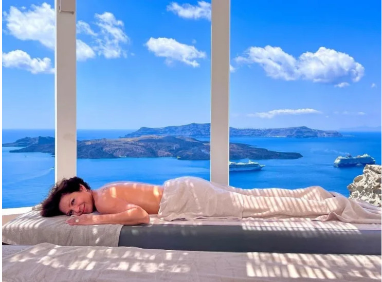 Η Ταμίλα Κουλίεβα ολοκλήρωσε για φέτος τους «Παγιδευμένους» του ΑΝΤ1 και αυτές τις μέρες βρίσκεται στη Σαντορίνη για διακοπές.