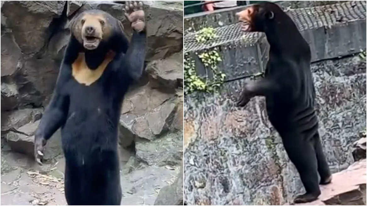 Το ίντερνετ έχουν κατακλύσει βίντεο και φωτογραφίες από αρκούδες σε ζωολογικό κήπο της Κίνας που στέκονται και συμπεριφέρονται σαν… άνθρωποι.