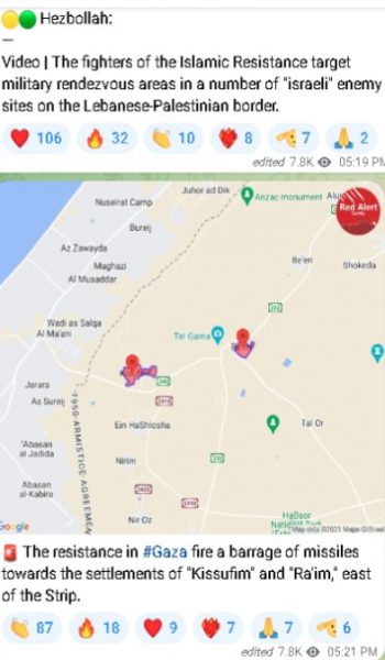 Βέβαια και η Χεζμπολάχ δεν πήγε πίσω. Ο χάρτης που ακολουθεί αναρτήθηκε στις 17:30 ακριβώς, οπότε η επίθεση συνέβη κατά τη διάρκεια της ομιλίας Μπάιντεν.