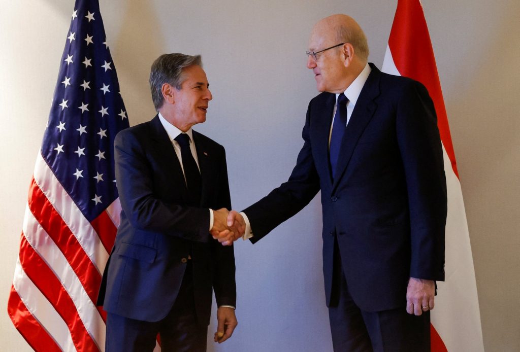 Ο υπουργός Εξωτερικών των ΗΠΑ, Άντονι Μπλίνκεν, ευχαρίστησε τον υπηρεσιακό πρωθυπουργό του Λιβάνου, Νατζίμπ Μικάτι, για τις προσπάθειές του να κρατήσει τη χώρα του μακριά από τον πόλεμο, την ώρα που η πανίσχυρη εξτρεμιστική οργάνωση Χεζμπολάχ απειλεί να ανοίξει ένα δεύτερο μέτωπο με το Ισραήλ.