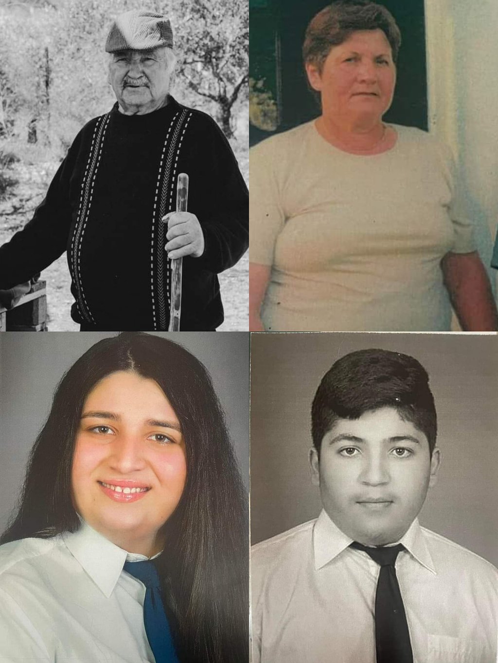 Η Εξόδιος Ακολουθία των τεσσάρων (παππούς, γιαγιά και δύο εγγόνια) θα τελεστεί αύριο Τετάρτη, 03/01/2024 η ώρα 2:00 μ.μ. στον Ιερό Ναό Μεταμορφώσεως του Σωτήρος στο χωριό Λιμνάτης Λεμεσού. Έκκληση των οικείων τους, αντί στεφάνων να γίνονται εισφορές για την οικογένεια.