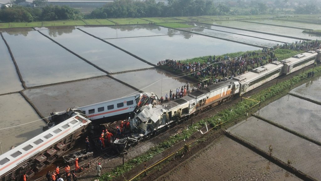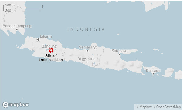 Το ένα τρένο ήταν τοπικό προαστιακό και το άλλο κατευθυνόταν δυτικά προς την Μπαντούνγκ από την πόλη Σουραμπάγια όταν συνέβη το δυστύχημα, δήλωσαν αξιωματούχοι. Η Μπαντούνγκ βρίσκεται περίπου 100 μίλια οδικώς νοτιοανατολικά της Τζακάρτα, της πρωτεύουσας.