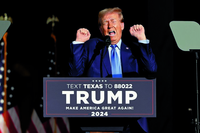 Ο πρώην πρόεδρος των ΗΠΑ Ντόναλντ Τραμπ μιλάει κατά τη διάρκεια προεκλογικής εκδήλωσης στο Χιούστον του Τέξας