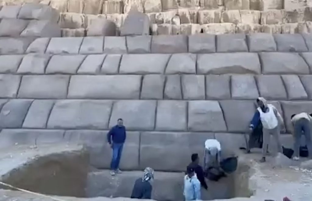 Γρανιτένιοι ογκόλιθοι τοποθετούνται για να καλύψουν τη βάση της πυραμίδας Μενκάουρε της Αιγύπτου στη Γκίζα, καθώς πραγματοποιούνται εργασίες ανακαίνισης στο μνημείο πολιτιστικής κληρονομιάς, προκαλώντας επικρίσεις στα μέσα κοινωνικής δικτύωσης.