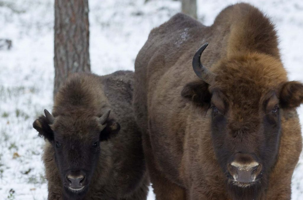 Βίσονες σε χιονισμένο τοπίο