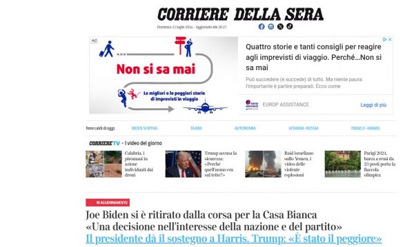 Corriere Della Serra: Ο Τζο Μπάιντεν αποσύρθηκε από την κούρσα για τον Λευκό Οίκο
