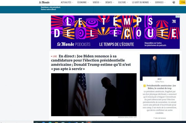 Le Monde: Ο Μπάιντεν ανακοινώνει την απόσυρσή του από την αμερικάνικες προεδρικές εκλογές