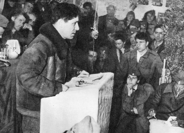 Τώρα δεν τον σκέφτεται κανένας και οι στρατηγοί του και οι άνθρωποί του τον σταυρώνουν. Κάνουν ό,τι λέει το κόμμα. Το δικό του το κόμμα. Και πόσο απάνθρωπο είναι το αυγουστιάτικο αεράκι που στέλνει πάνω από ψηλά η ταΐγκα, τα σφεδάμνια (σ.σ. σφενδάμια) σκόρπια στην απεραντοσύνη της στέπας τρίζουν σαν τα κόκαλα ξεχασμένων νεκρών που ξερνάει με το λιώσιμο του χιονιού το καλοκαίρι η ταΐγκα. Και δίπλα του κανείς. Μόνο η θηλιά. Το κόμμα;
