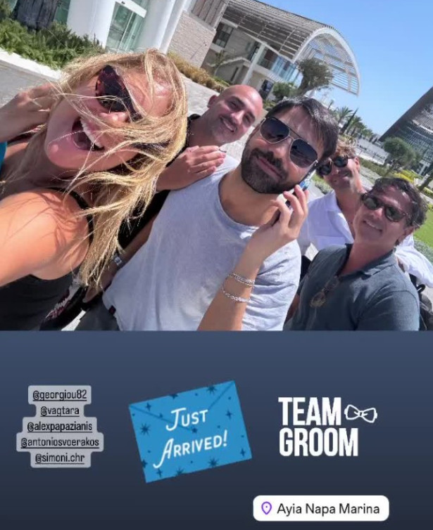 «Στην ομάδα του γαμπρού» έγραψε η δημοσιογράφος και παρουσιάστρια, ανεβάζοντας μια φωτογραφία με τον Ανδρέα Γεωργίου και τους φίλους του.