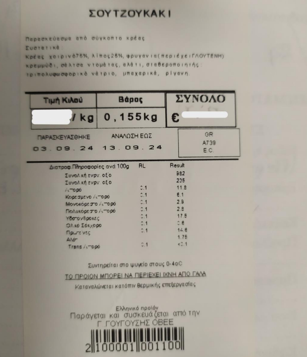 Σύμφωνα με την ανακοίνωση, ο Ε.Φ.Ε.Τ και η Περιφερειακή Διεύθυνση Ηπείρου, μετά από ελέγχους στο πλαίσιο του Προγράμματος «Επίσημος έλεγχος για την παρακολούθηση Μικροβιολογικών κριτηρίων ασφάλειας τροφίμων» πήρε δείγματα από το παρασκεύασμα κρέατος με την εμπορική ονομασία «ΣΟΥΤΖΟΥΚΑΚΙ», ημερομηνία παραγωγής 03-09-2024 και ημερομηνία λήξης 13-09-2024 που παράγεται από την εταιρεία ΥΙΟΙ ΓΟΥΓΟΥΣΗ Ο.Β.Ε.Ε. στο 12ο χλμ. Ε.Ο. Καστοριάς-Κορησού.