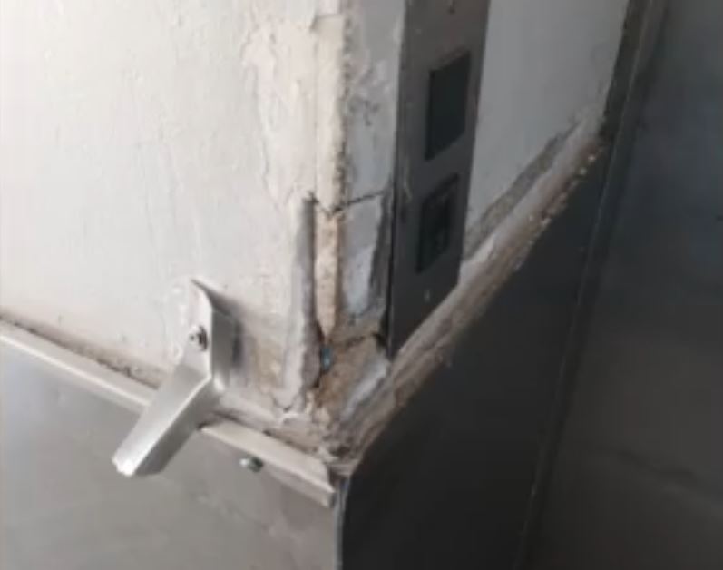 Πολλές πόρτες είναι έτοιμες να καταρρεύσουν, ενώ το κτίριο έχει μετατραπεί σε ερείπιο από τη μούχλα και τις φθορές.