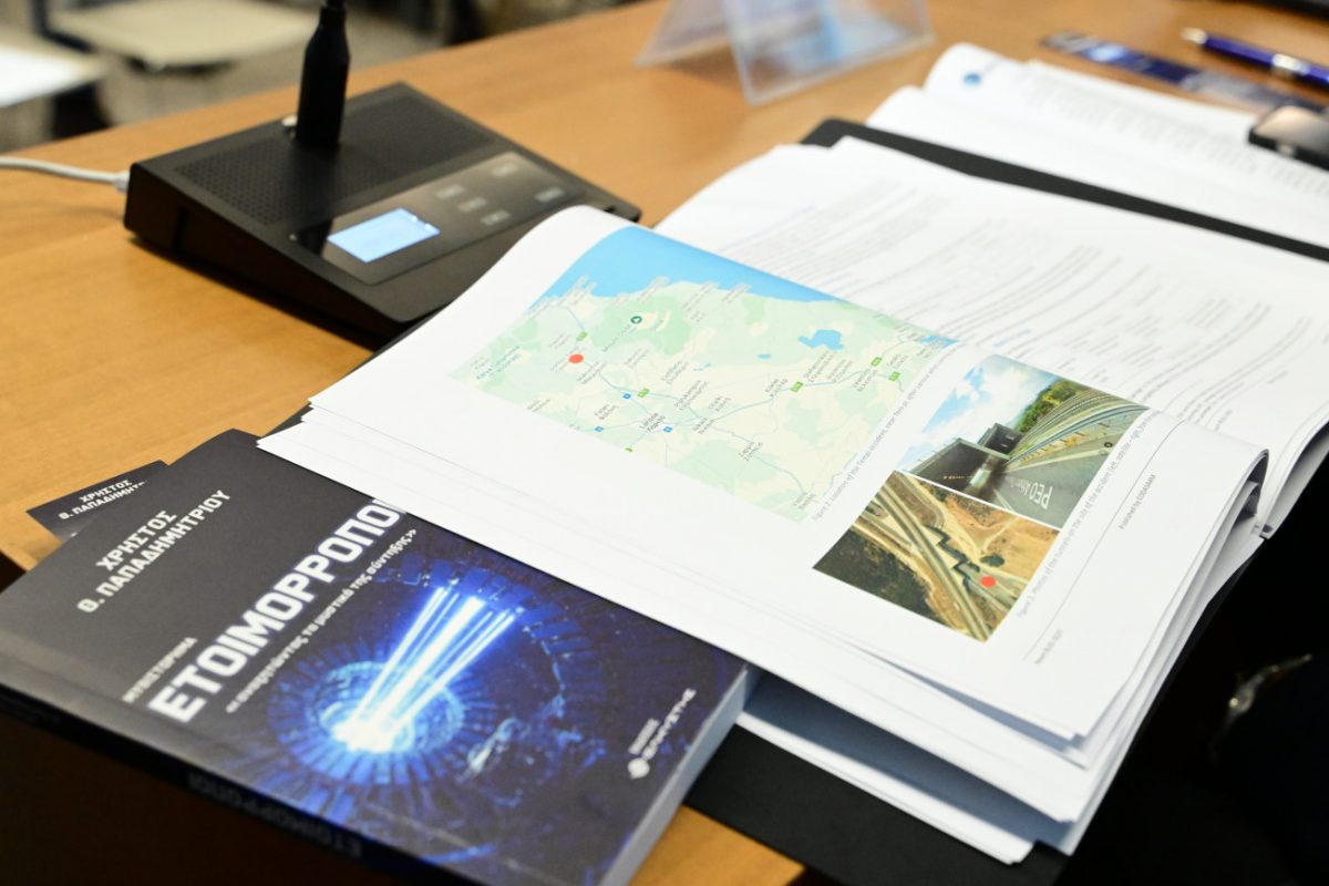 Παρουσίαση του πορίσματος των ερευνητών του Εθνικού Οργανισμού Διερεύνησης Αεροπορικών και Σιδηροδρομικών Ατυχημάτων και Ασφάλειας των Μεταφορών (ΕΟΔΑΣΑΑΜ), για τα αίτια των εκρήξεων και της πυρκαγιάς που ακολούθησε της σύγκρουσης της επιβατικής αμαξοστοιχίας με την εμπορική, στις 28/02/2023 στα Τέμπη, παρουσία της τριμελούς επιτροπής διερεύνησης, σε αίθουσα της ΕΣΗΕΑ