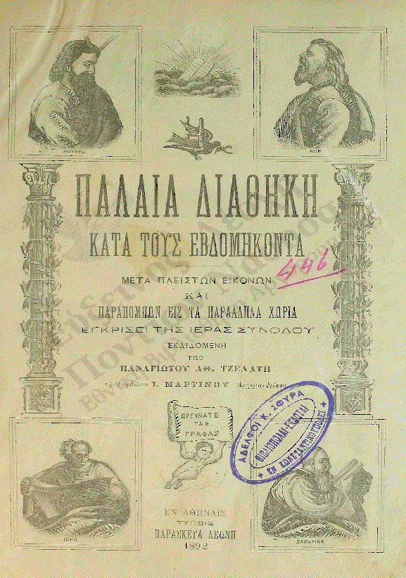 *Στη φωτογραφία του παρόντος άρθρου, η Παλαιά Διαθήκη κατά τους Εβδομήκοντα (έκδοση του 1892, πηγή: Ψηφιοθήκη ΑΠΘ).
