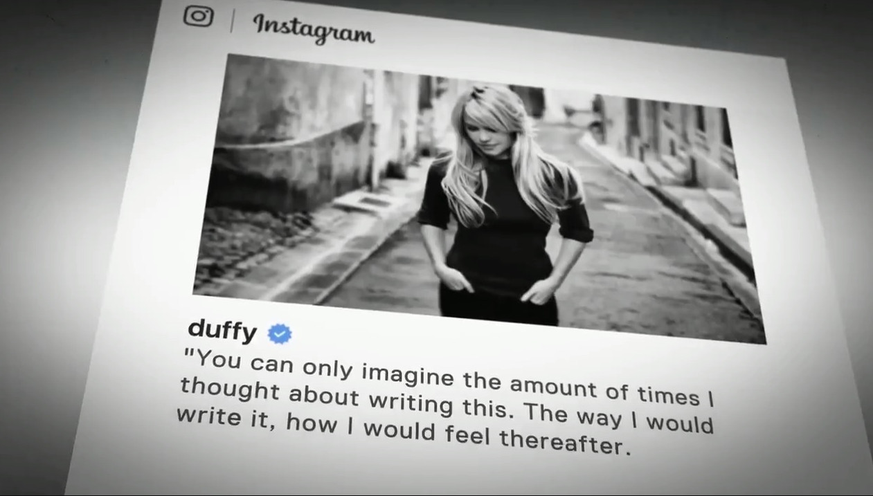 «Ένα μικρό πράγμα για να ζεστάνει την καρδιά. Ελπίζω να είστε όλοι καλά. Πολύ αγάπη, Duffy» έγραψε στη λεζάντα.