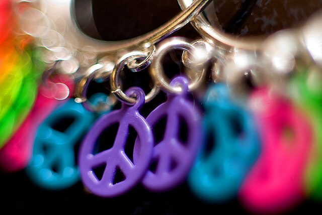 Καθώς ο πόλεμος του Βιετνάμ κλιμακώθηκε στα μέσα της δεκαετίας του 1960, το σύμβολο της ειρήνης υιοθετήθηκε από τους αντιπολεμικούς διαδηλωτές και το κίνημα της αντικουλτούρας, βρίσκοντας τη στερεότυπη θέση του στα λεωφορεία της Volkswagen και στα μπλουζάκια με acid-wash.