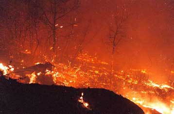Ολη η δύναμη της Πυροσβεστικής του νομού επιχειρεί να περιορίσει το μέτωπο της πυρκαγιάς, το έργο της όμως καθίστατο ιδαίτερα δύσκολο λόγω των ισχυρών νότιων ανέμων που πνέουν στην περιοχή.