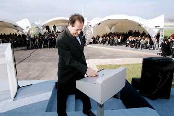 Ο Κ.Λαλιώτης αναφέρθηκε στην πρώτη φάση του έργου, που άρχισε το 1983 και ολοκληρώθηκε το 1992, και δεν παρέλειψε να αποδώσει τις καθυστερήσεις που παρατηρήθηκαν κατά τη διάρκεια της δεύτερης φάσης τόσο σε παράγοντες, τους οποίους δεν κατονόμασε, όσο και στην προσπάθεια να είναι το έργο σύγχρονο από πλευράς αξιοπιστίας, ποιοτικής λειτουργίας και ασφάλειας.