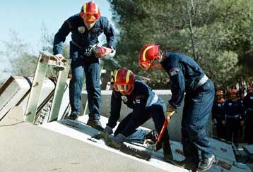 Με μία επιχείρηση διάσωσης εγκλωβισμένου σε κτίριο που έχει καταρρεύσει από σεισμό έγινε τη Δευτέρα η επίδειξη της νεοσύστατης Κινητής Ομάδας Αντιμετώπισης Καταστροφών (ΚΟΜΑΚ) της Πολεμικής Αεροπορίας, παρουσία του υπουργού Εθνικής Αμυνας Ακη Τσοχατζόπουλου. Όπως επισήμανε ο κ. Τσοχατζόπουλος, η μονάδα αυτή δίνει στις Ένοπλες Δυνάμεις και δη στην Πολεμική Αεροπορία «την ικανότητα παρέμβασης σε φυσικές καταστροφές».