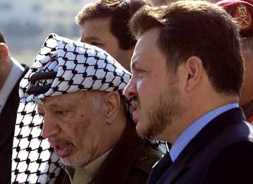 Στο Αμάν ο Παλαιστίνιος ηγέτης συναντήθηκε με τον Ιορδανό βασιλιά, Αμπντάλα, τον οποίο ενημέρωσε για τις ειρηνευτικές πρωτοβουλίες που βρίσκονται σε εξέλιξη στην Ουάσινγκτον, υπό την αιγίδα του Μπιλ Κλίντον. Σύμφωνα με όσα μεταδίδει το πρακτορείο ειδήσεων Petra, ο Αμπντάλα τάχθηκε υπέρ του αιτήματος των Παλαιστινίων για επιστροφή των Αράβων προσφύγων στα εδάφη που σήμερα βρίσκονται υπό ισραηλινό έλεγχο: «Η εξεύρεση λύσης στο συγκεκριμένο ζήτημα αποτελεί αναγκαία προϋπόθεση για την εδραίωση της ειρήνης στη Μέση Ανατολή» τόνισε ο Ιορδανός μονάρχης.
