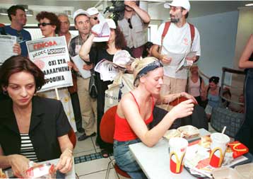 Εκδήλωση διαμαρτυρίας με πικετοφορία στα McDonalds στο Σύνταγμα πραγματοποίησε το μεσημέρι της Πέμπτης η οργάνωση «Πρωτοβουλία ενάντια στα μεταλλαγμένα προϊόντα».