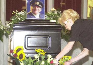 Τιμητική φρουρά δίπλα στο φέρετρο του Έλληνα κωμικού, εκπρόσωποι της παλαιότερης και νεώτερης γενιάς ηθοποιών όπως ο Σταύρος Παράβας, η Μάρθα Καραγιάννη και ο Πέτρος Φυσούν που ήταν και γαμπρός του εκλιπόντα.